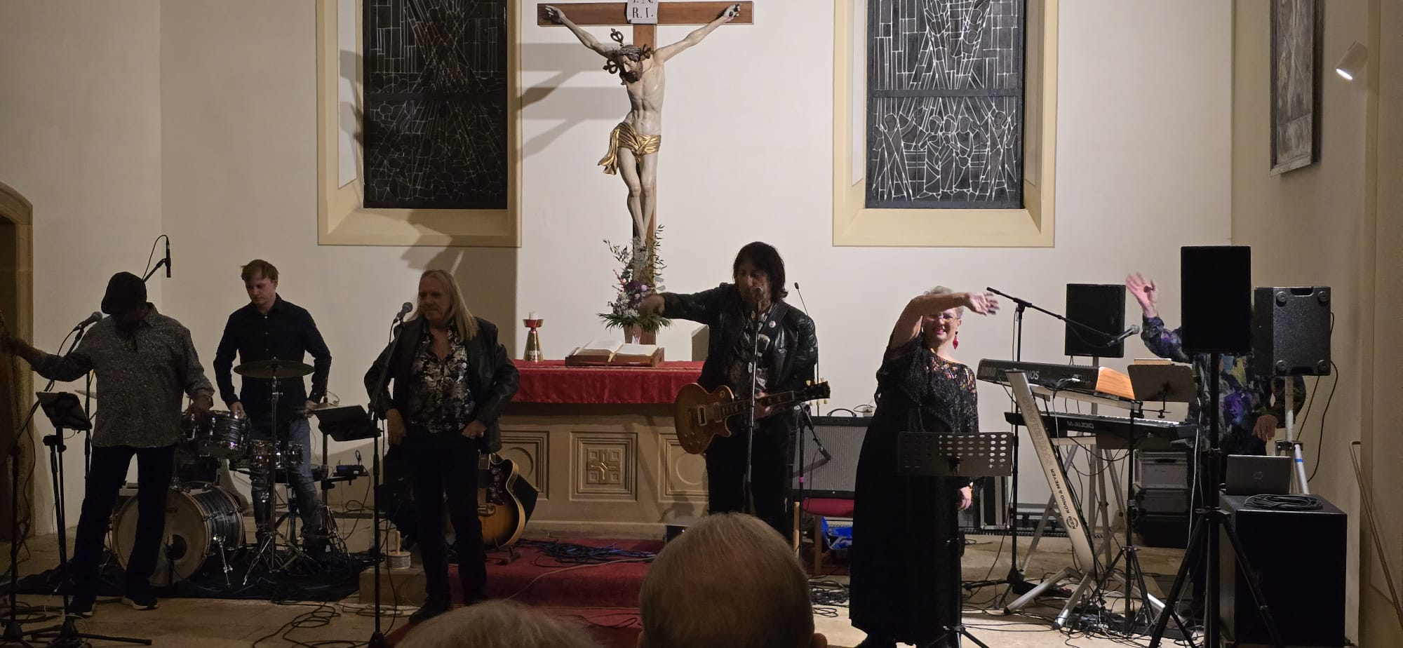 Am 28. November waren Siggi Schwarz mit seiner Band und Pfarrerin i.R. Eva-Maria Busch mit dem Programm „Tears in Heaven“ aus der Reihe Rock und Poesie,in der Martinskirche.
